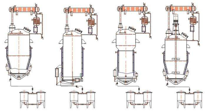提取罐:中藥提取罐主要形式有正錐式、蘑菇式和直筒式,其中正錐式應用最為廣泛。容積有0.1m3~10m3可定制,采用304或316L不銹鋼制作,內外精細拋光,符合新版GMP要求。設備為內罐、夾層、保溫層三層結構,夾層內通入蒸汽或導熱油間接性給內罐的物料傳熱,耐高溫保溫層有效減少熱損失的同時也避免了操作人員燙傷事故的發(fā)生??筛鶕a工藝需要,配置攪拌器,作動態(tài)提取。氣缸控制自動出渣門,出料方便徹底。